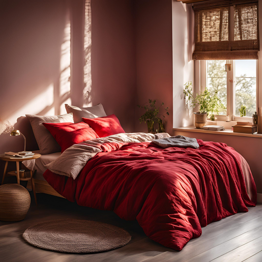 Completo Letto 2 Piazze in Puro Cotone Rosso Made in Italy