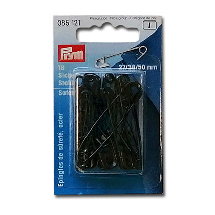 085121 | Spille di sicurezza nere Prym No.0,2,3 | 27/38/50 mm | Confezione da 18 pz