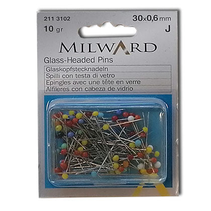 2113102 | Spilli con Testa di Vetro Multicolore Milward | 30x0.6mm | Confezione da 10gr