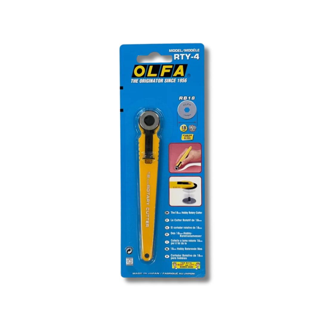Scopri la precisione della taglierina rotante OLFA RTY-4 da 18 mm. Ideale per lavori complessi grazie alla lama in acciaio inossidabile RB18, cambio rapido con un solo clic e coprilama scorrevole. Perfetta per creativi destri e mancini, offre un controllo superiore con le sue scanalature per le dita integrate. Prolunga la durata della lama con un tappetino rotante OLFA.