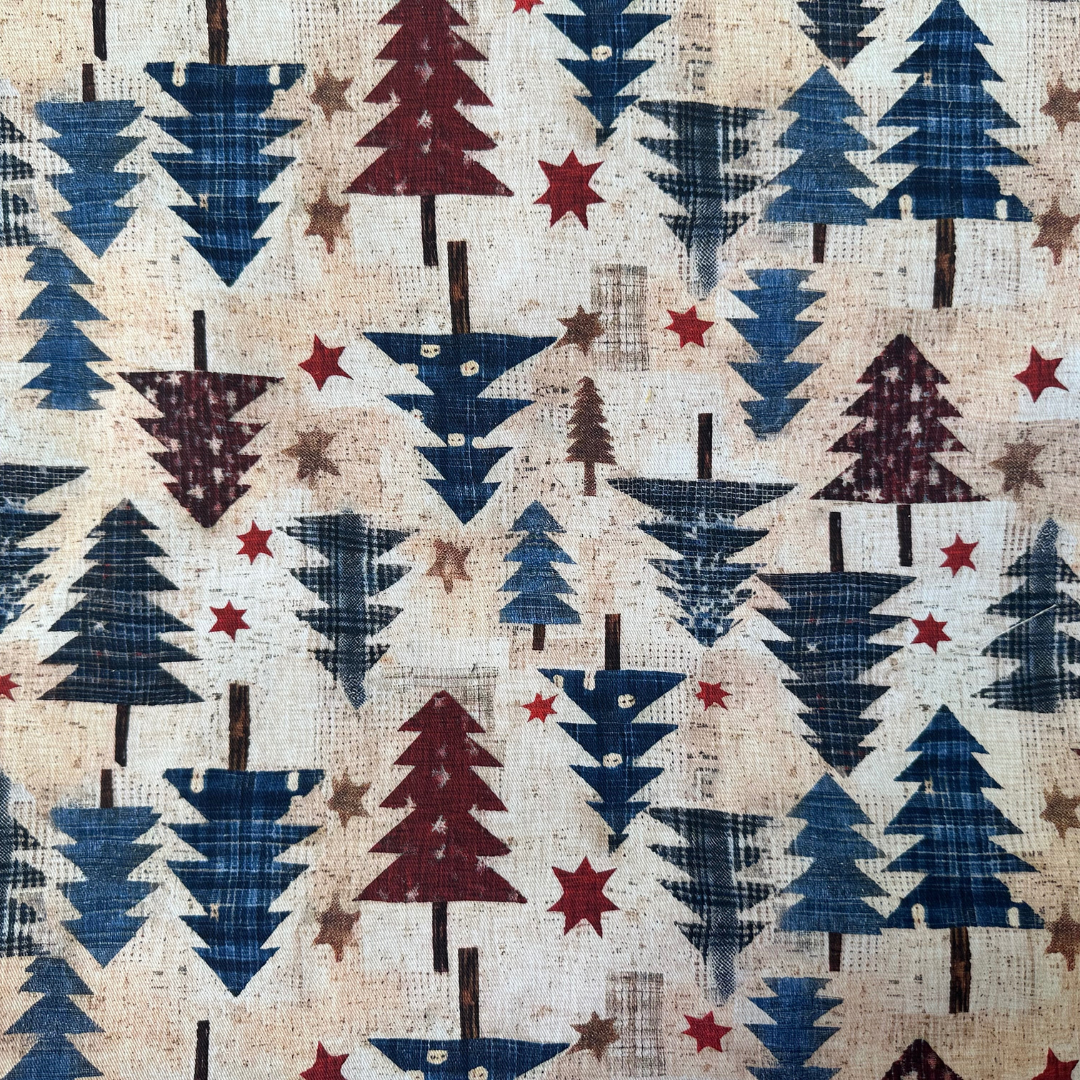 Scopri il nostro tessuto Cotonina Natalizia a metraggio! Realizzato in 100% cotone con una fantasia di alberi natalizi, questo tessuto è perfetto per progetti di cucito creativo. Con un'altezza di 150cm, è ideale per decorazioni e regali natalizi fai-da-te.