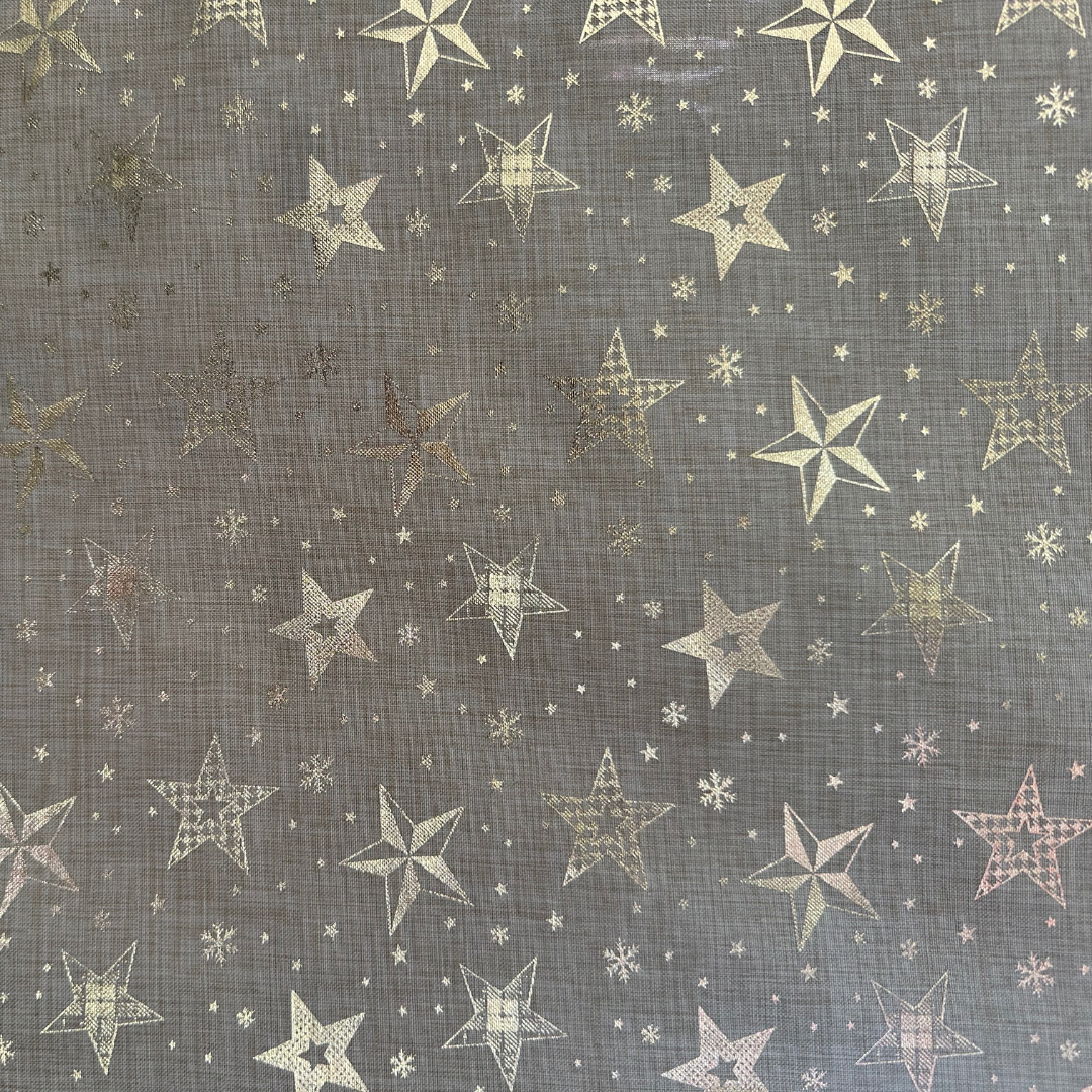 Questo Tessuto Natalizio con motivo Stelle presenta una raffinata finitura metallizzata che dona brillantezza delicata e un tocco elegante alle tue creazioni. Perfetto per tovaglie, cuscini e decorazioni per la casa durante le feste. Ideale anche per progetti di cucito creativo e sartoria artigianale. Il prezzo si riferisce a 1 metro lineare.